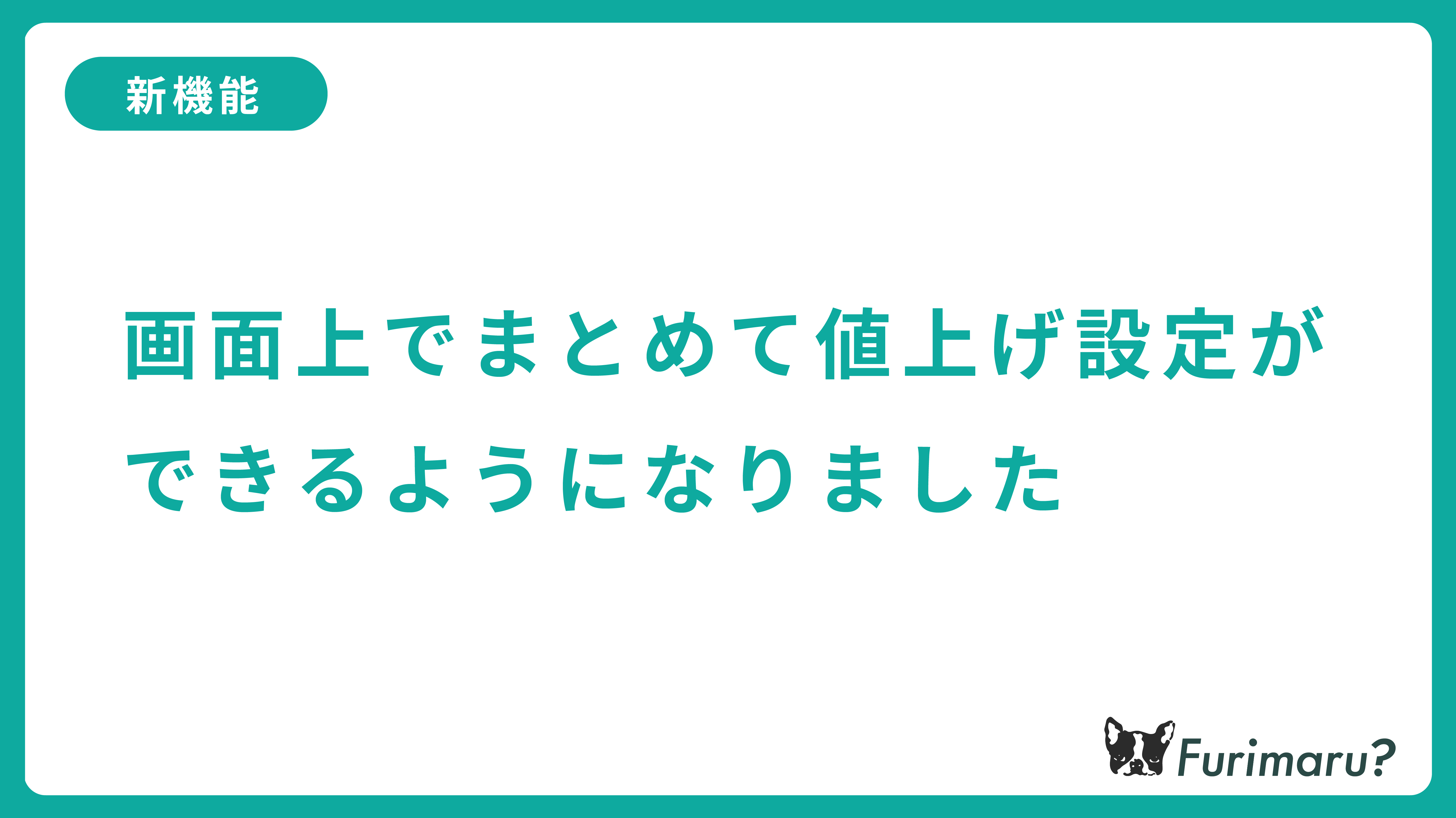 CATEGORY ニュース 画面上でまとめて値上げ設定ができるようになりました! 2025.10.09 ニュース furimaru-admin Furimaru(フリマル) 出品機能に「カテゴリーのキーワード検索」機能が追加されました! 2025.09.08 ニュース furimaru-admin Furimaru(フリマル) CSV出品機能をリリースしました! 2025.09.02 ニュース furimaru-admin Furimaru(フリマル) 出品機能をリリースしました! 2025.08.21 ニュース furimaru-admin Furimaru(フリマル) リユース経済新聞様に掲載されました! 2025.05.30 ニュース furimaru-admin Furimaru(フリマル) 一括で発送通知を送信できるようになりました! 2025.05.08 ニュース furimaru-admin Furimaru(フリマル) 「ピッキングリスト」に住所が印字されるようになりました! 2025.04.30 ニュース furimaru-admin Furimaru(フリマル) 「項目の初期設定」がリリースされました! 2025.04.18 ニュース furimaru-admin Furimaru(フリマル) CSVで「商品データの削除」が可能になりました! 2025.03.25 ニュース furimaru-admin Furimaru(フリマル) 価格改定機能がリリースされました! 2025.03.03 ニュース furimaru-admin Furimaru(フリマル) もっと見る