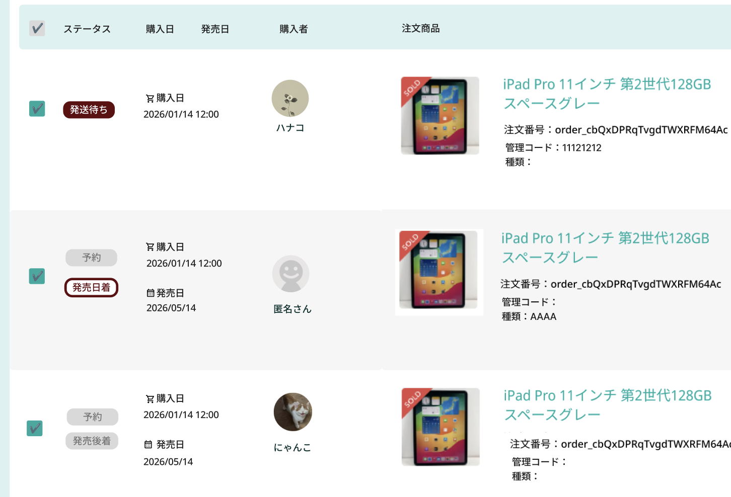 これにより予約商品の発送タイミングを一目で把握でき、発送ミスの防止や注文管理の効率化につながります。