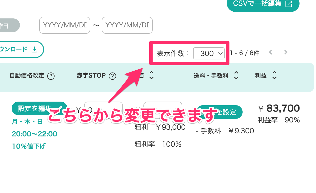 複数の商品に対して一括で自動値下げ・値上げを設定することも可能です。